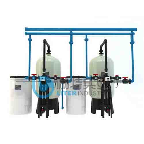 O amaciante de água consiste em dois tanques de resina (tanque principal e tanque auxiliar) válvula de controle hidráulico e tanque de sal. A válvula de controle controla o curso d'água para alternar entre o tanque principal e o tanque auxiliar para garantir que um tanque esteja sempre em condições de funcionamento e o outro O tanque está em estado de regeneração ou espera A solução salina de regeneração é sugada pela pressão negativa do ejetor venturi instalado na válvula A água de regeneração e limpeza é o efluente amolecido de outro tanque. Para diferentes durezas da água bruta, use diferentes números de mostradores de água para atingir o ciclo de trabalho e regeneração correspondente.